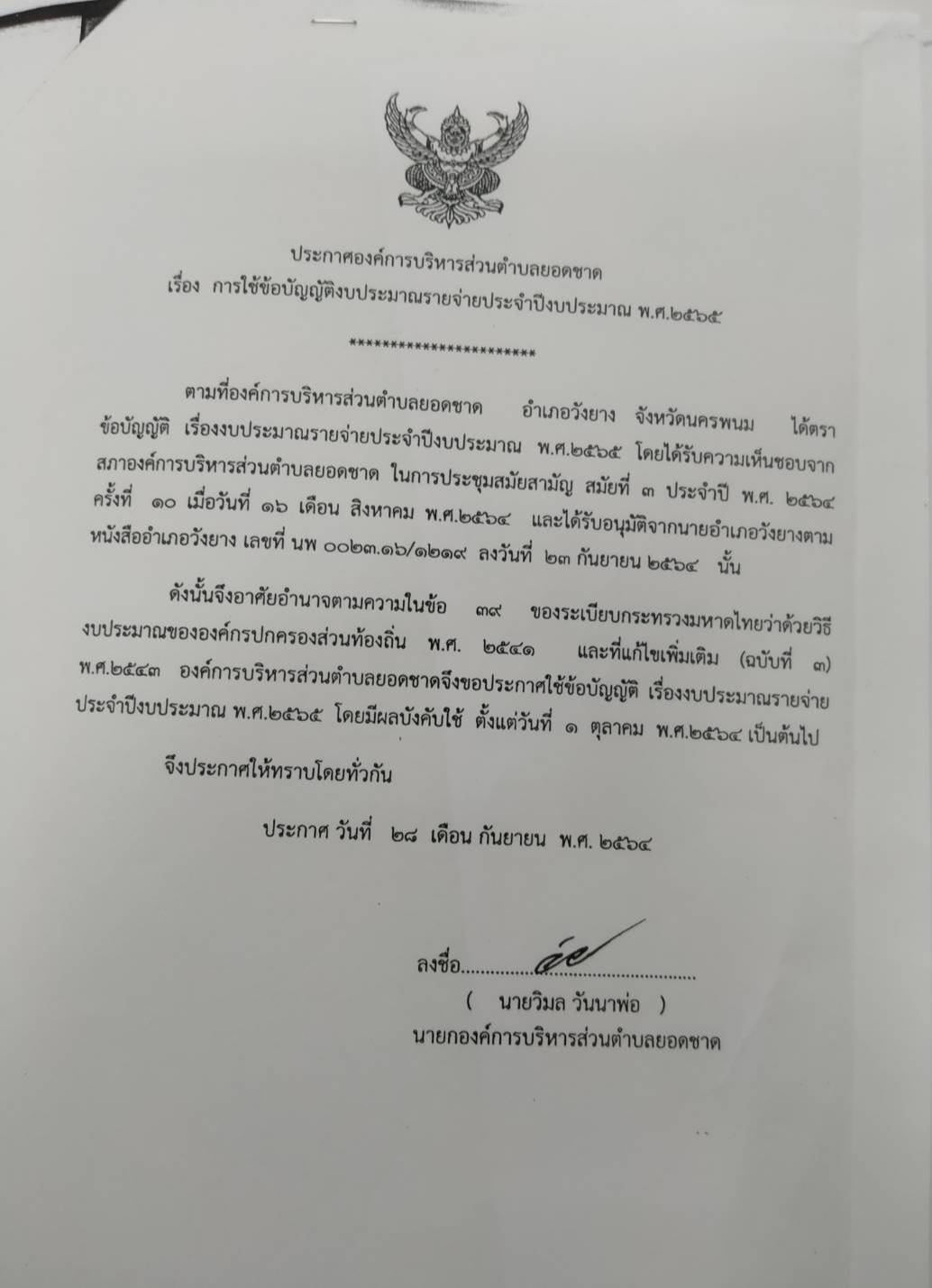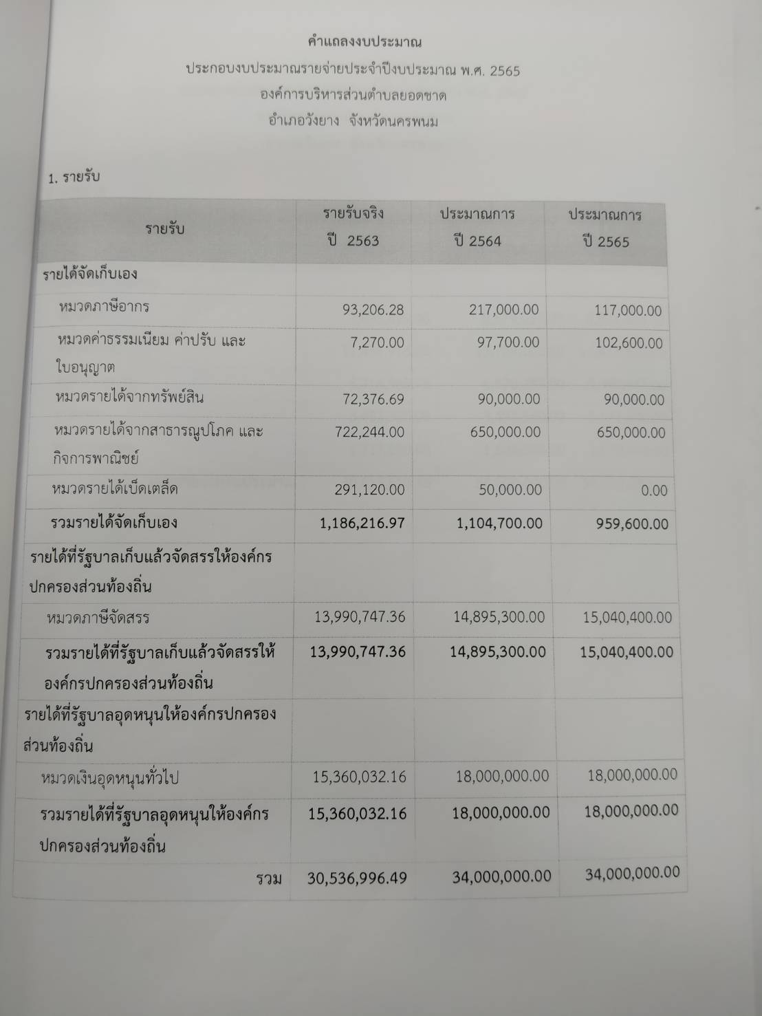 ข้อบัญญัติงบประมาณรายจ่ายประจำปี 2565