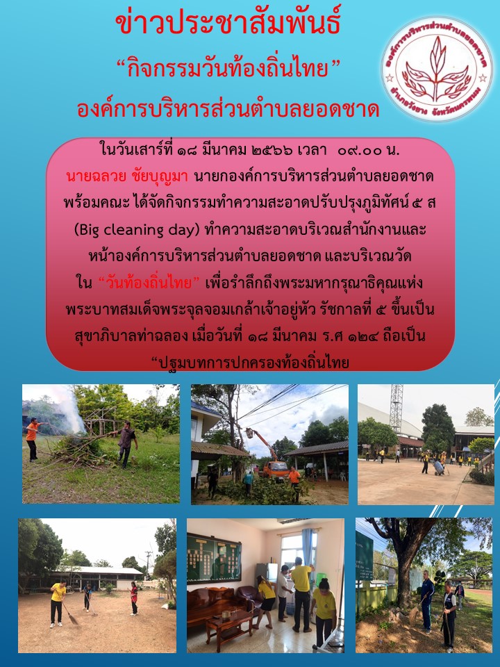 การจัดกิจกรรมทำความสะอาดเนื่องในวันท้องถิ่นไทย ประจำปี 2566