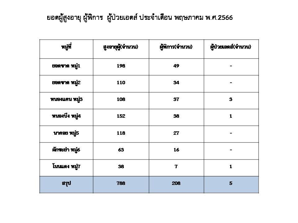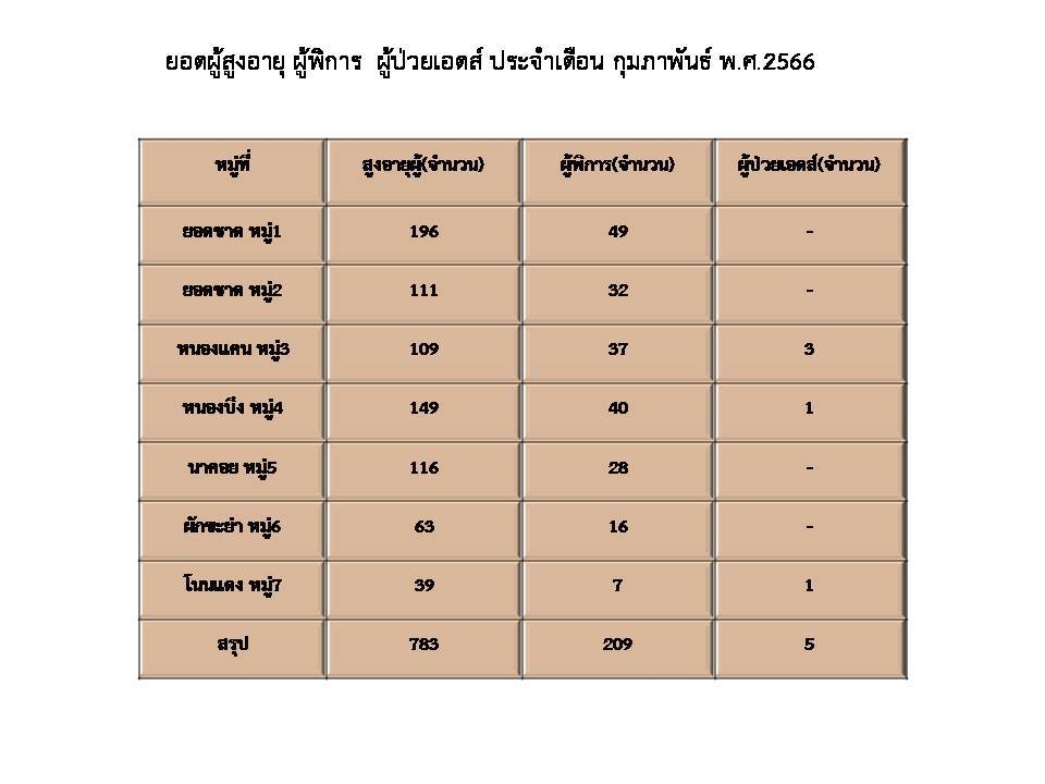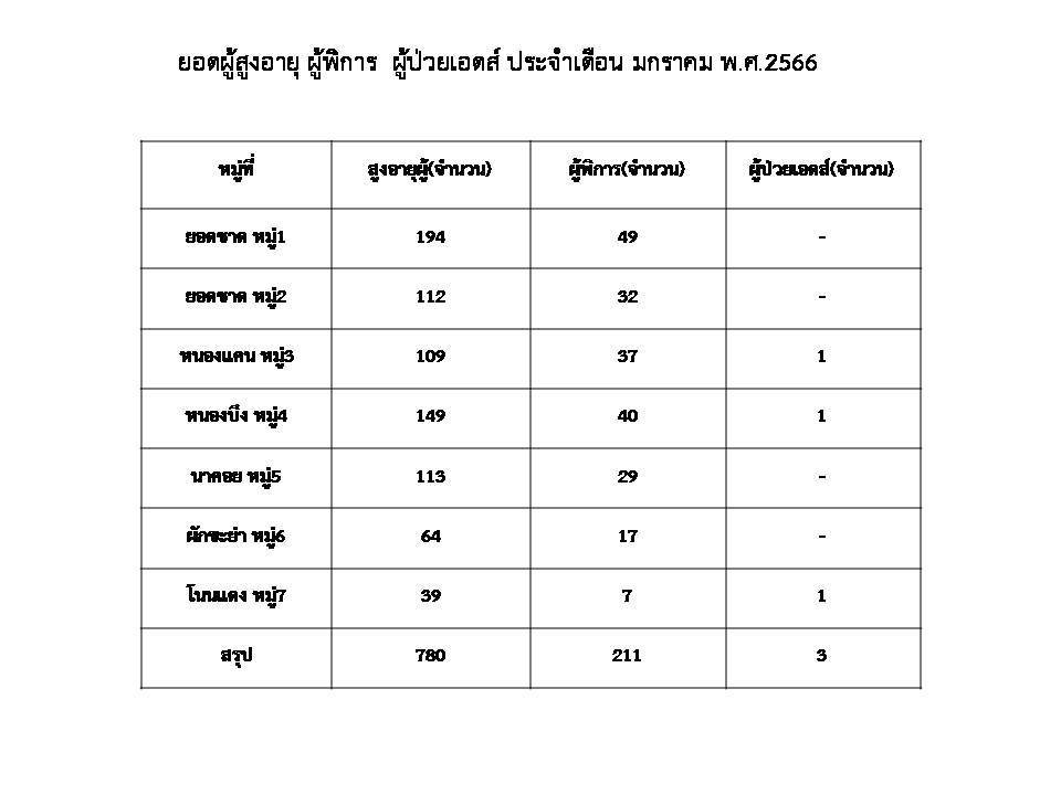 สรุปยอดผู้สูงอายุ ผู้พิการ ผู้ป่วยเอดส์ 2566