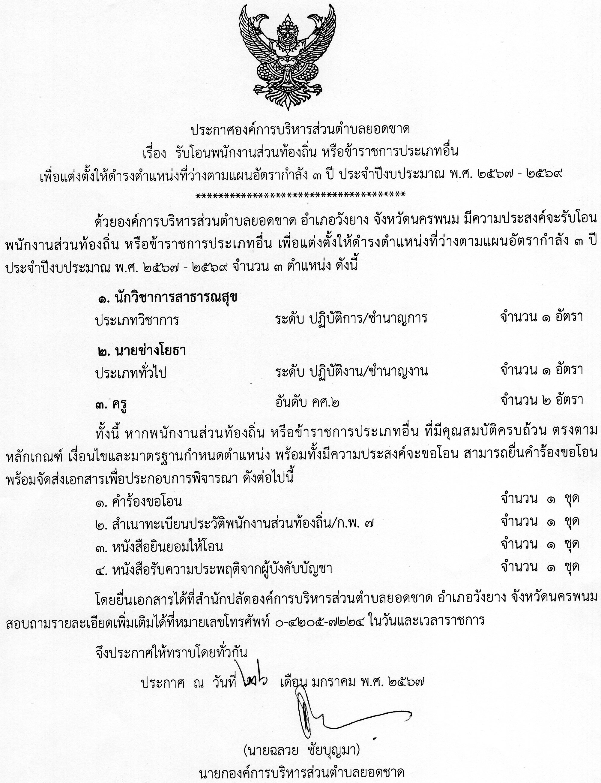 ประชาสัมพันธ์การรับโอนข้าราชการหรือพนักงานส่วนท้องถิ่น หรือข้าราชการประเภทอื่น