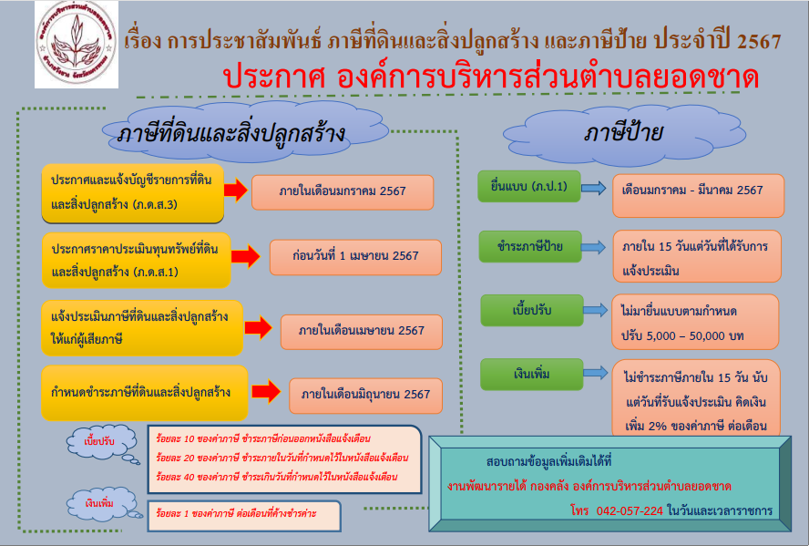 ประชาสัมพันธ์การจัดเก็บภาษีที่ดินและสิ่งปลูกสร้าง และภาษีป้าย ประจำปี 2567