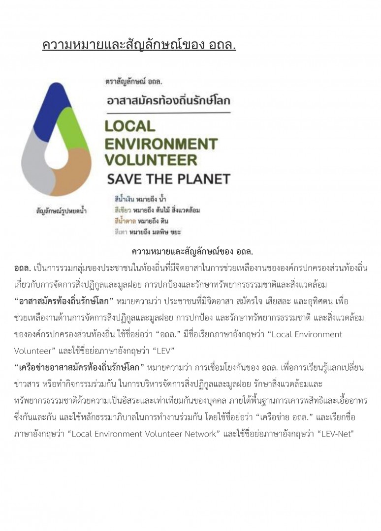 ประชาสัมพันธ์ สัญลักษณ์อาสาสมัครท้องถิ่นรักษ์โลก (อถล.)